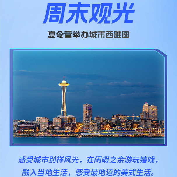 畅游西雅图,领略美国东部独特的城市风光和动人景色;深度融入当地,感受最地道的美式生活。